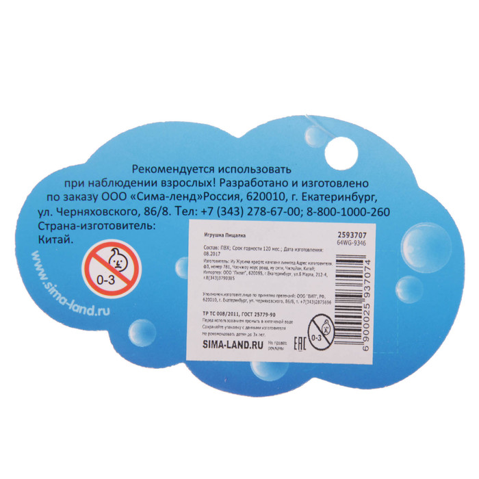 Качество товара подтверждается сертификатом соответствия ЕАС. Предназначено для детей с 3 лет.