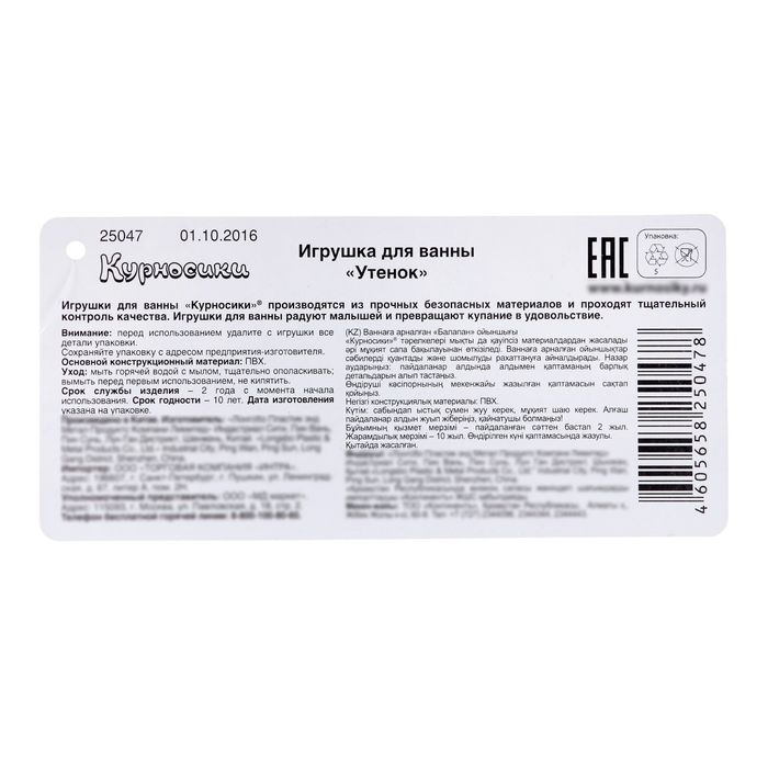 | ТИП | Игрушка для ванной |