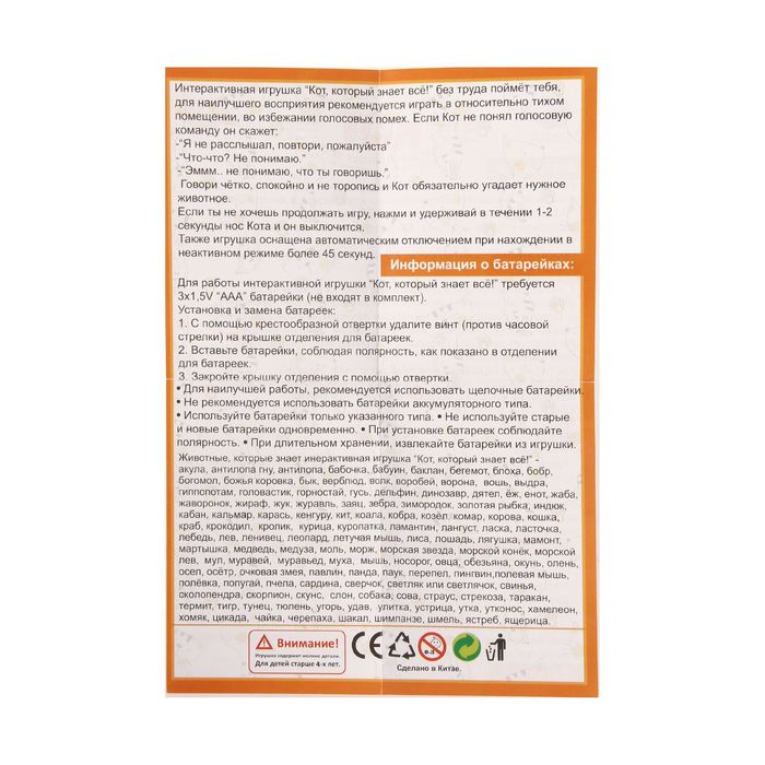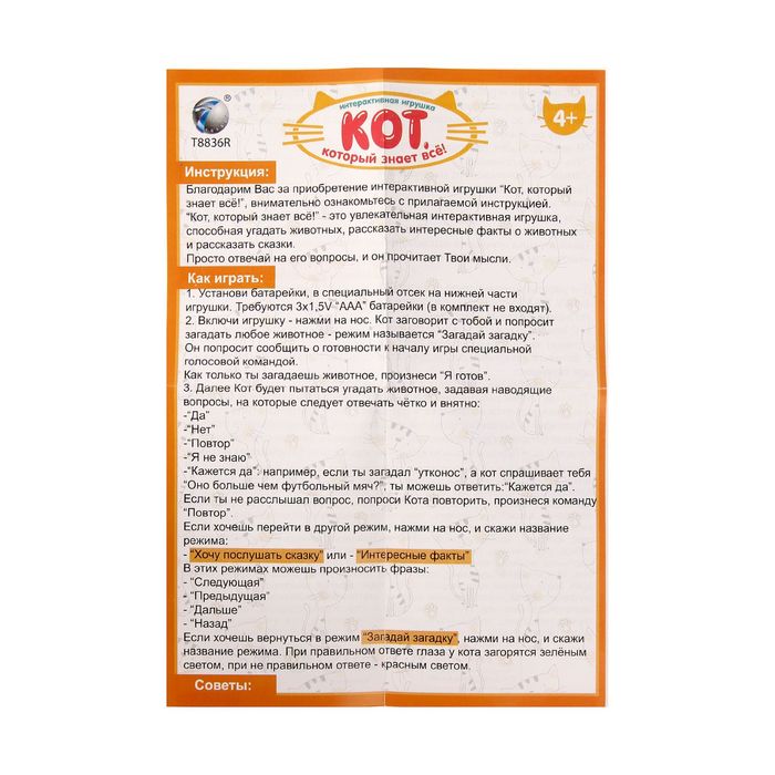 Методы воспитания и образования будут меняться бесконечно, но во все времена постоянным остаётся одно ― радость ребёнка от подаренной ему игрушки. Как известно, счастливая улыбка крохи ― самая большая награда для родителей. Игрушка интерактивная "Кот, который знает всё" рыжий — отличный подарок вашему малышу.