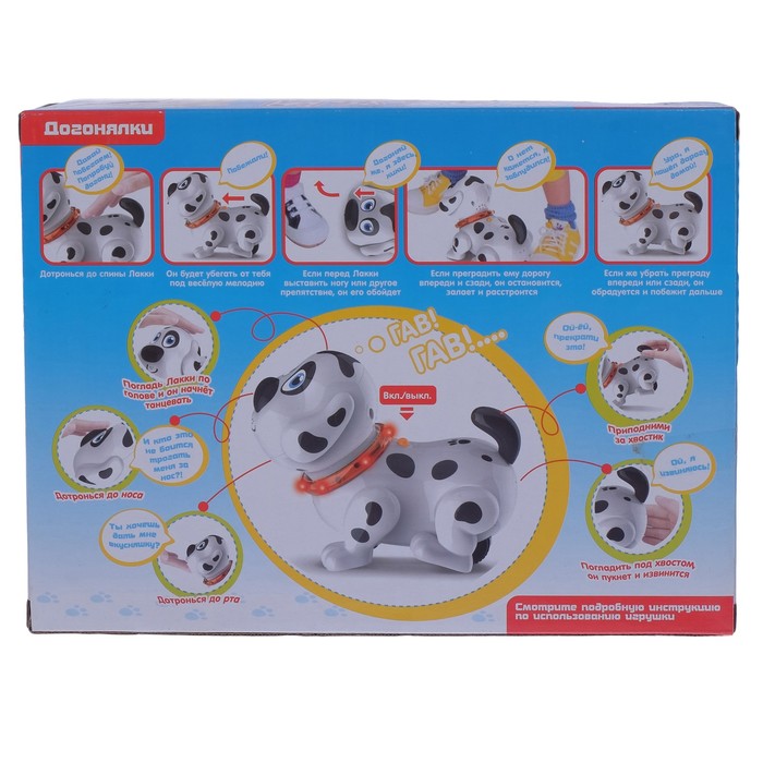 С «Лакки» карапуз будет весело проводить время: вести интерактивный диалог, наблюдать, как во время разговора у него светятся глазки, слушать песенки. Также у пёсика можно регулировать громкость, режимы работы, в его арсенале припасено 14 различных мелодий.