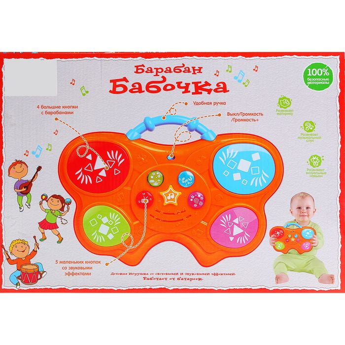 Игрушка музыкальная "Барабан-бабочка", световые и звуковые эффекты