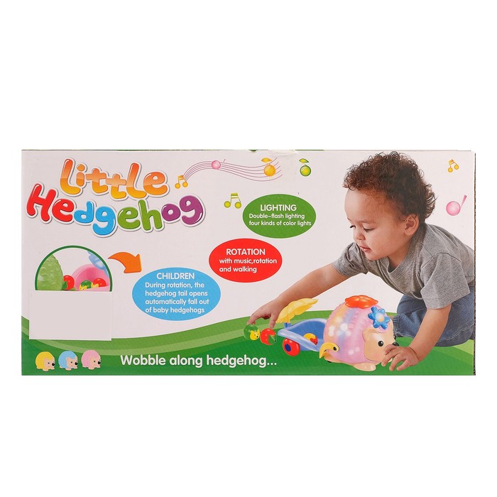 С эффектами игра станет увлекательней: ежиха светится и проигрывает весёлую мелодию.