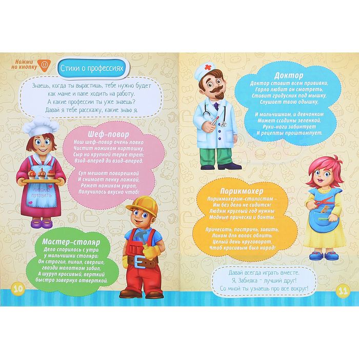 - прослушать русские народные сказки: «Теремок» и «Маша и медведь», стишки о профессиях.