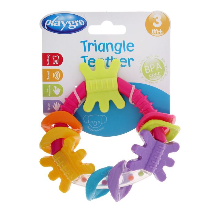 Звук в модели появляется при встряхивании. Причудливая форма надолго займёт внимание карапуза. Погремушку удобно использовать: лёгкая вещица подходит для захвата маленькими ладошками.