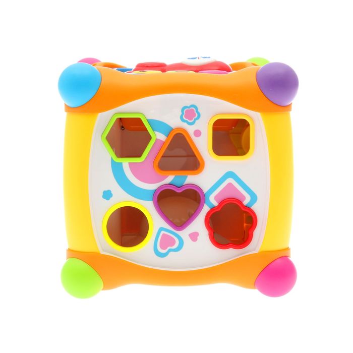 С необычным кубом малыш никогда не соскучится, ведь на каждой грани есть игра. Чадо с удовольствием сложит пазл, подберёт соответствующие фигуры к отверстиям, пройдёт шариковый лабиринт и даже позвонит по телефону.
