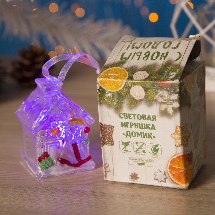 Игрушка световая "Домик деда Мороза" (батарейки в комплекте) 1 LED, RGB