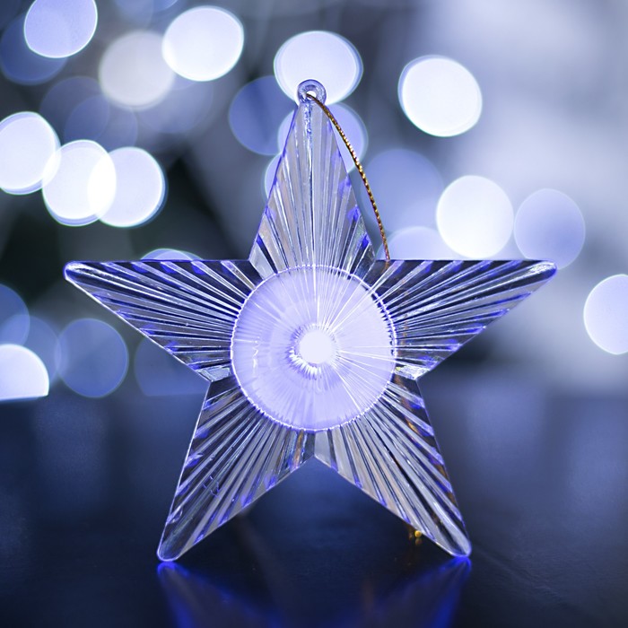 Фигурка Звёздочки создаст атмосферу настоящего праздника в доме! Днём она будет радовать вас своей красотой и необычным материалом — прозрачный пластик, из которого изготовлена эта фигурка, так похож на настоящий лёд, только не тает! А вечером, когда за окном станет темно и наступит пора зажигать гирлянду на ёлке, включите и эту очаровательную игрушку! Она будет светиться на ветке мягким, таинственным светом.
