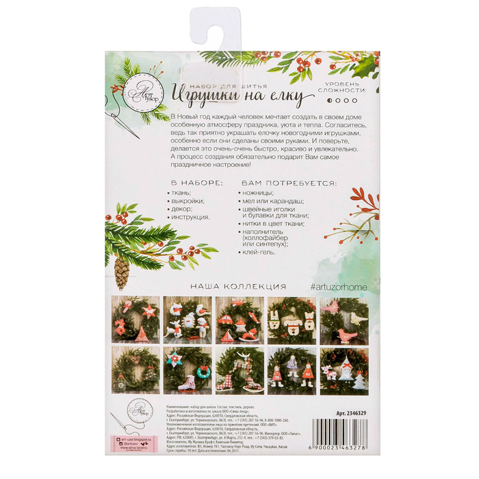 В Новый год нам очень хочется, чтобы в душе и в доме царила особенная атмосфера волшебства. Один из способов создать праздничное настроение – украсить новогоднюю ёлочку игрушками, сделанными своими руками. С помощью нашего набора сшить их вам не составит труда. А процесс создания обязательно подарит радость! Украшения наполнят дом теплом и уютом, станут его изюминкой и предметом гордости.