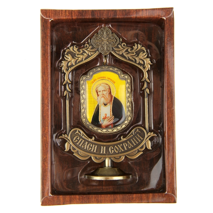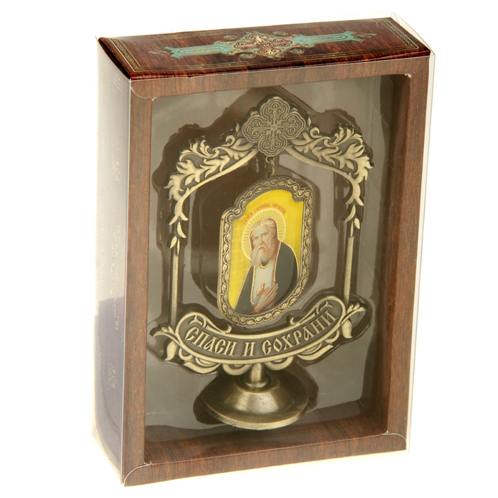 Икона Серафима Саровского на подвесе изготовлена из качественного сплава бронзового цвета. Состоит из рамки на подставке в которую подвешена иконка с тиснением под смоляным слоем. Икона полностью соответствует канонам Православной Церкви. Упакована в качественную оригинальную упаковку, достойную для святого изображения. Икона выглядит по-настоящему красиво и богато и будет прекрасным подарком с глубоким смыслом, подчеркивающим духовность дарителя и получателя.