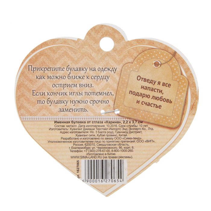 Именная булавка от сглаза "Карина"
