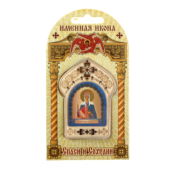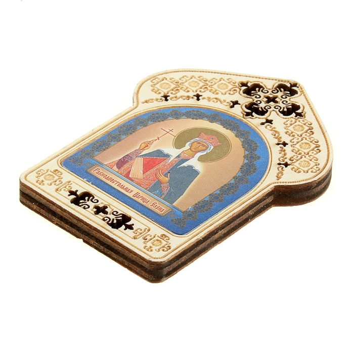 Именная икона "Равноапостольная Царица Елена", покровительствует Еленам - выполнена из качественного дерева с ажурным узором, напечатана на бумажной вклейке. Миниатюрный размер иконки позволяет с удобством носить ее с собой. На упаковку- блистер нанесена молитва своему небесному покровителю.