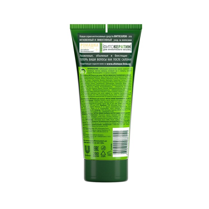 Интенсивная фитомаска Чистая линия Восстановление и объем для поврежденных волос, 200 мл