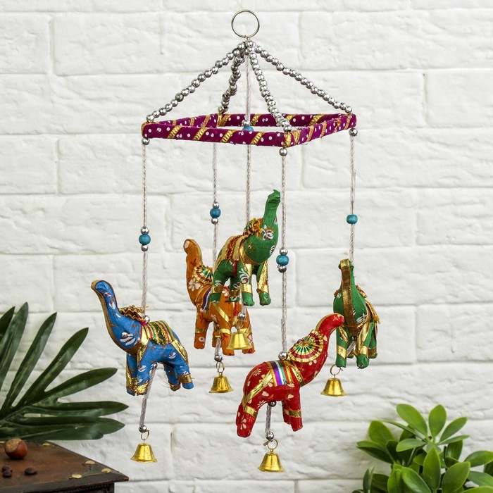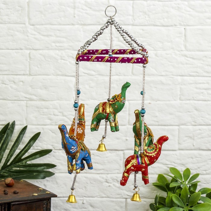 Интерьерная подвеска с колокольчиками "Слоники" 11х34 см