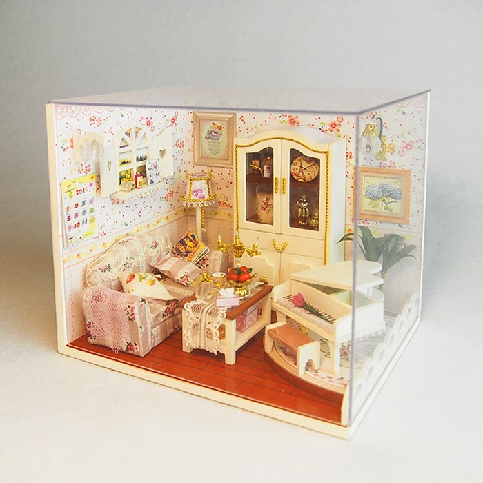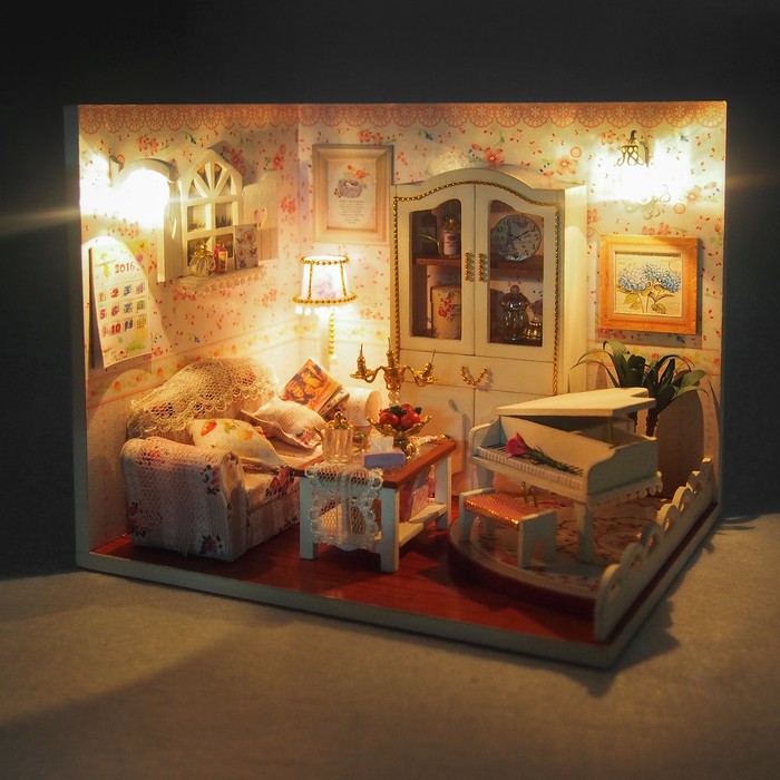 Интерьерный домик - миниатюра, своими руками "Комната с роялем" со светом