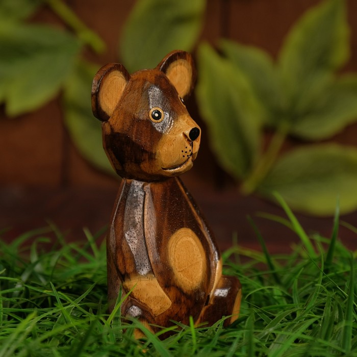 Интерьерный сувенир "Медведь" 13,5*10 см коричневый дерево МИКС