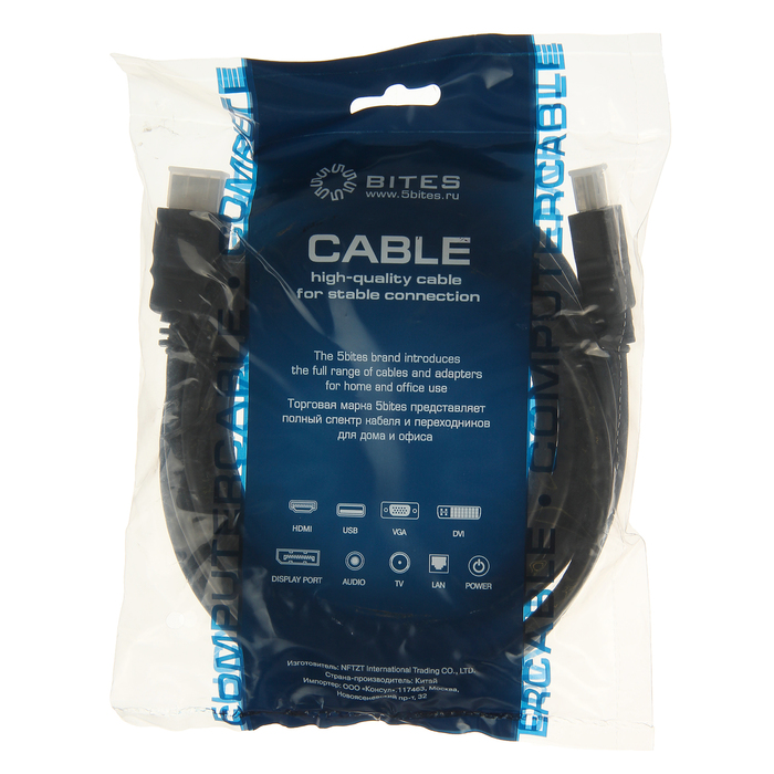Кабель 5bites, HDMI - HDMI, 3 м, черный — это аксессуар, который увеличивает функциональность компьютера или другого прибора, подключая интерфейсы смежных устройств.