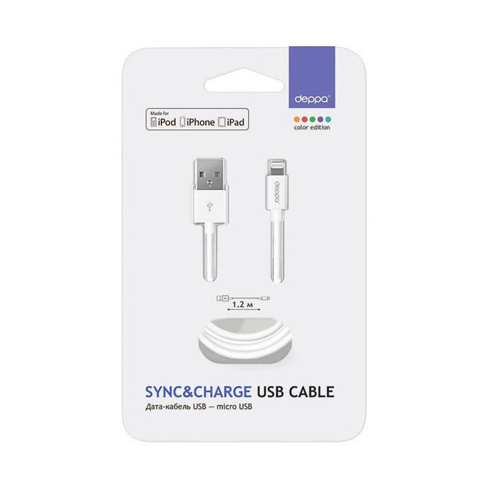 Кабель Deppa (72128) MFI Apple 8-pin, белый, 1,2 м — это аксессуар, который увеличивает функциональность компьютера или другого прибора, подключая интерфейсы смежных устройств.
