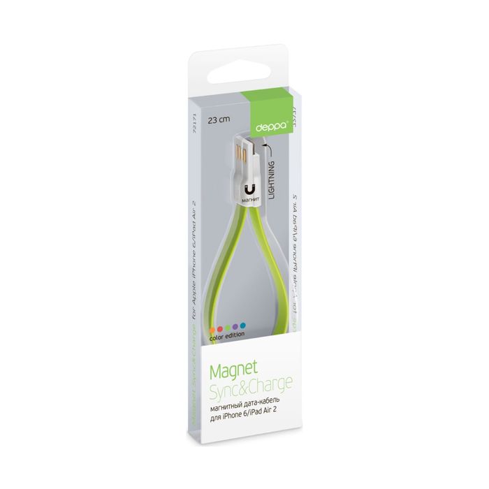 Кабель Deppa (72171) Magnet плоский Apple 8-pin, зеленый, 0,23 м — это аксессуар, который увеличивает функциональность компьютера или другого прибора, подключая интерфейсы смежных устройств.