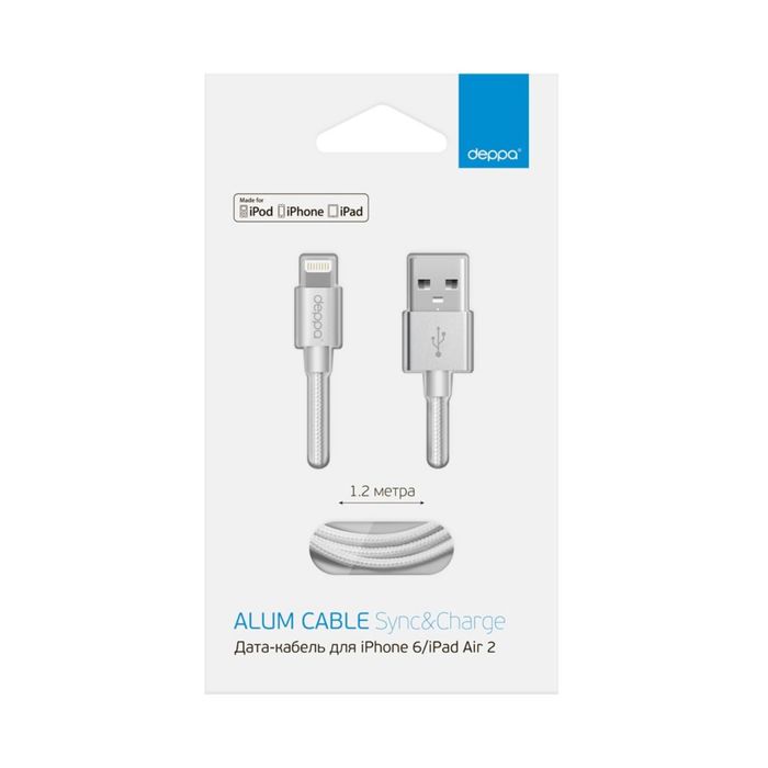 Кабель Deppa (72187) MFI алюминий/нейлон Apple 8-pin, серебрянный, 1,2 м — это аксессуар, который увеличивает функциональность компьютера или другого прибора, подключая интерфейсы смежных устройств.