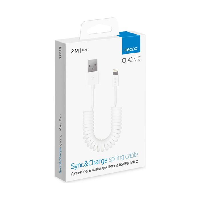 Кабель Deppa (72225) витой Apple 8-pin iPhone 5/6/7, белый, 2м — это аксессуар, который увеличивает функциональность компьютера или другого прибора, подключая интерфейсы смежных устройств.