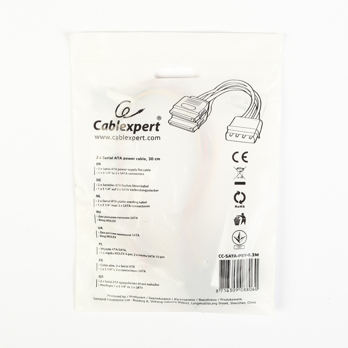 Мы предлагаем широкий ассортимент бытовой электроники. Кабель питания SATA Cablexpert, molex 4pin/2x sata15pin, на 2 устройства, 30см — это полезный и актуальный прибор, который прослужит долго и сделает вашу жизнь проще.