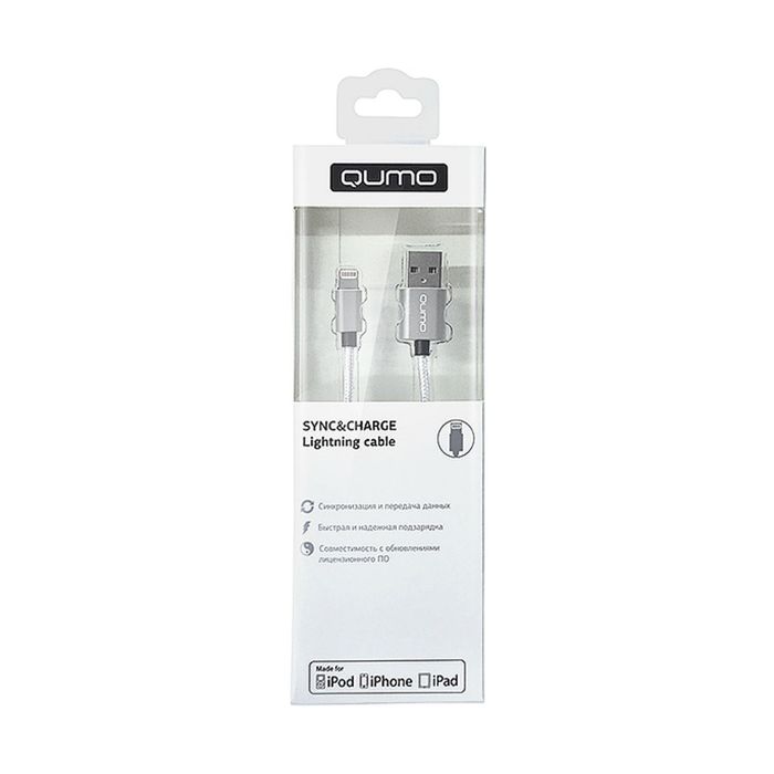 Кабель Qumo (20717) Apple 8-pin MFI, метал.кон/нейлон, серебряный — это аксессуар, который увеличивает функциональность компьютера или другого прибора, подключая интерфейсы смежных устройств.