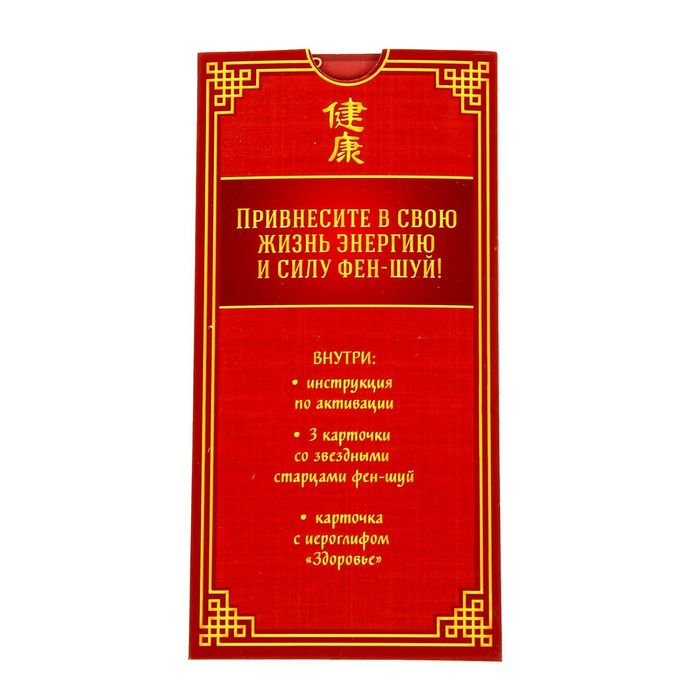 В наборе есть три талисмана звёздных старцев. Направьте полученную от них энергию в нужное русло. А карточка с иероглифом станет вашим личным оберегом от болезней и недугов.