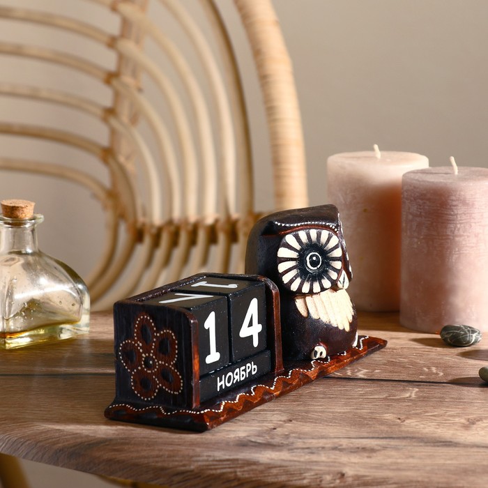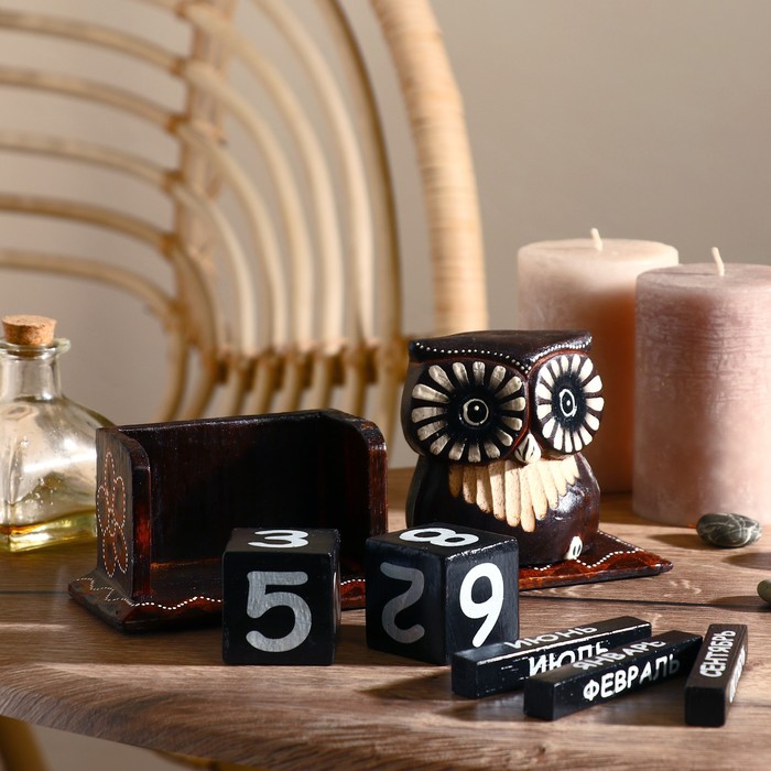 Календарь настольный дерево "Сова" 22х7х11 см поможет организовать ваше рабочее пространство и время. Востребованные предметы в удобной упаковке будут всегда под рукой в нужный момент.