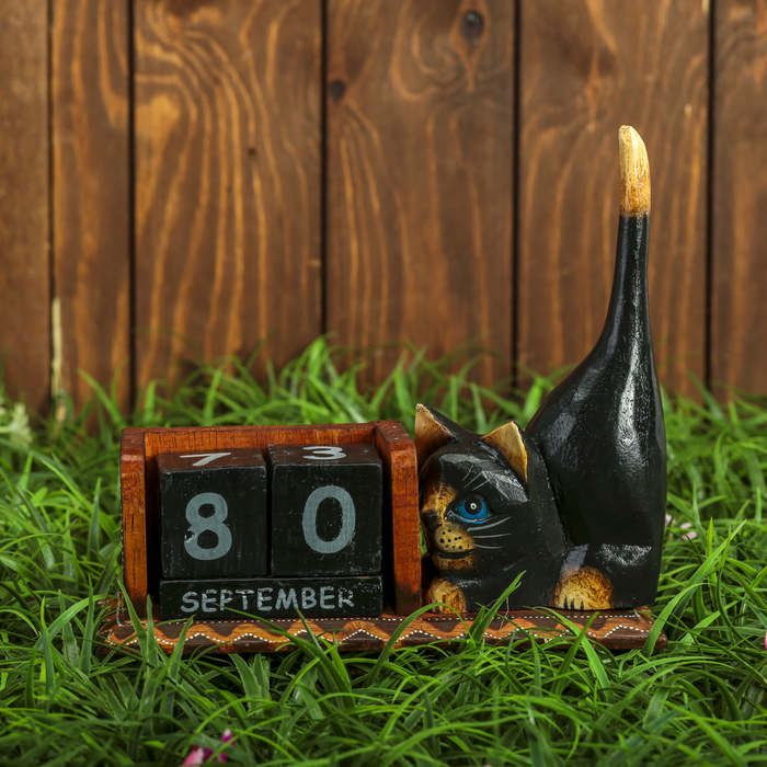 Календарь настольный дерево "Тёмная кошка" 22х6,5х17 см