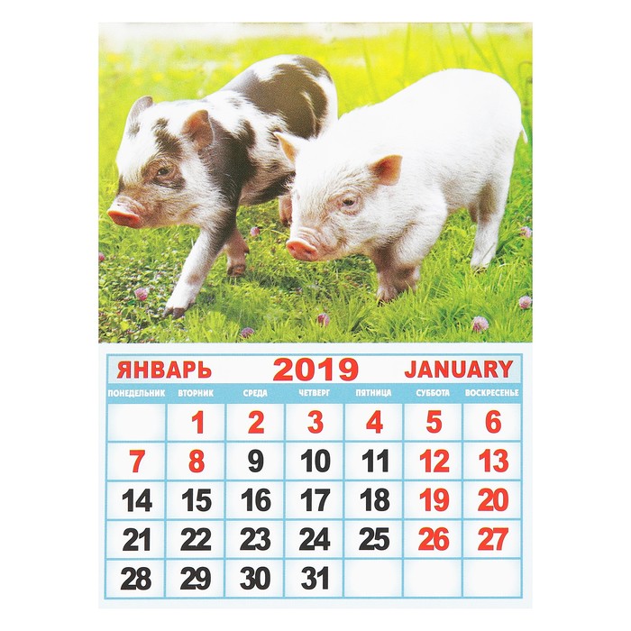 Календарь отрывной на магните "Год Свиньи. Маленький кабанчик" 2019 год, 9,6х12,8см