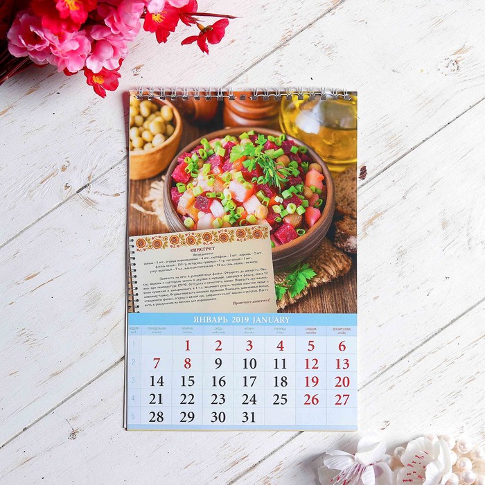 Календарь перекидной, пружина "Кухонный" 2019 год, 17х25см