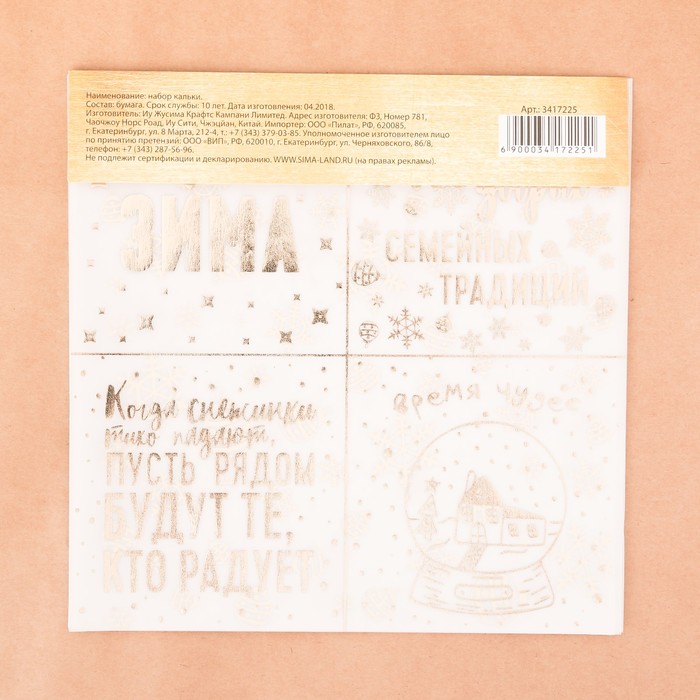 Калька декоративная для скрапбукинга в наборе «Моя зима», 20 × 20 см