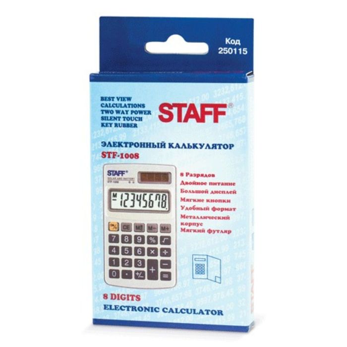 Калькулятор карманный 8-разрядный STAFF металлический STF-1008, двойное питание, 103х62 мм отличается высоким качеством. Его удобно брать с собой в школу, офис или использовать дома. Он облегчит и ускорит работу, сэкономит время, подсказывая вам правильный ответ.