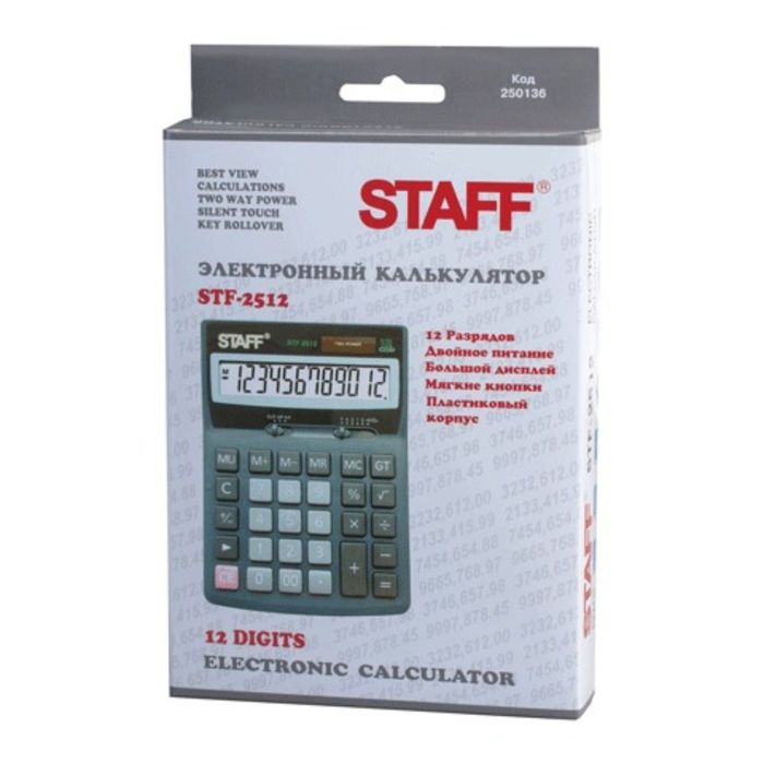 Калькулятор настольный 12-разрядный STAFF STF-2512, двойное питание, 170х125 мм отличается высоким качеством. Его удобно брать с собой в школу, офис или использовать дома. Он облегчит и ускорит работу, сэкономит время, подсказывая вам правильный ответ.