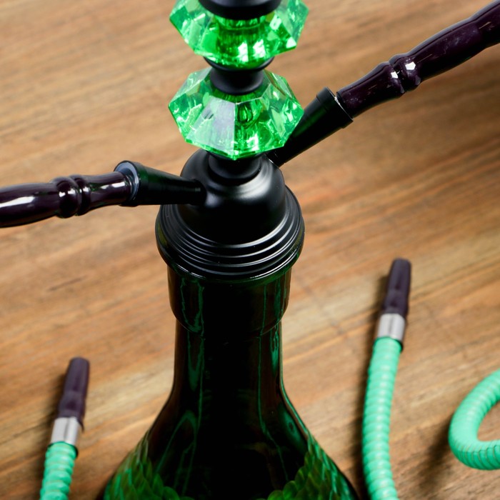 Кальян 47см 2тр, колба чёрно-зелёная, вставки на шахте акрил 2шт зелёные, 12х43 см