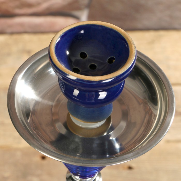 Кальян 49см 2тр, колба ваза синяя, вставки на шахте хрусталь 3шт синие, 12х49 см