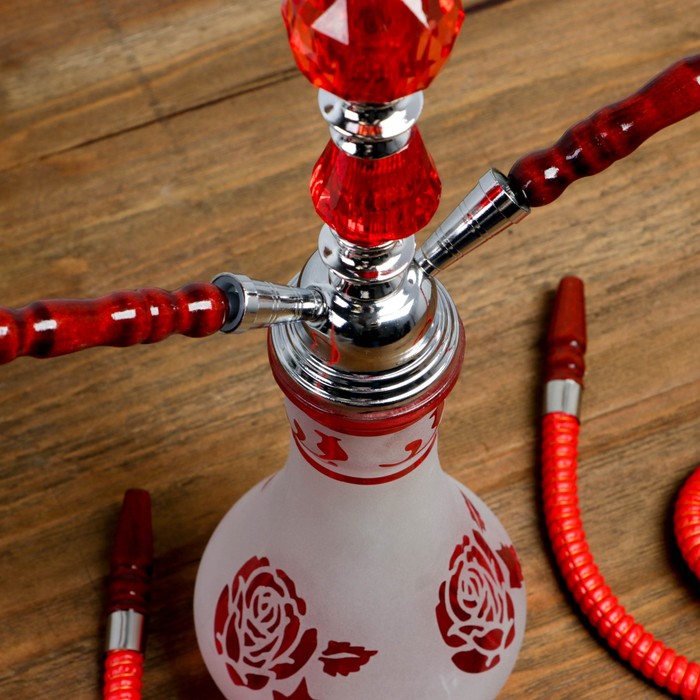Кальян 50см 2тр колба ваза вытянутая «Роза» матовая красно-белая, 3кр красных