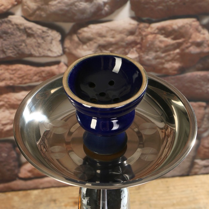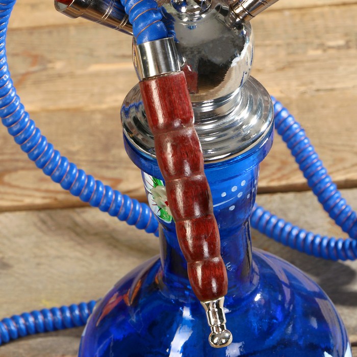 Кальян 69см 2тр, колба ваза синяя с цветами, акрил, 2кр синие, шахта хром, 15х66 см
