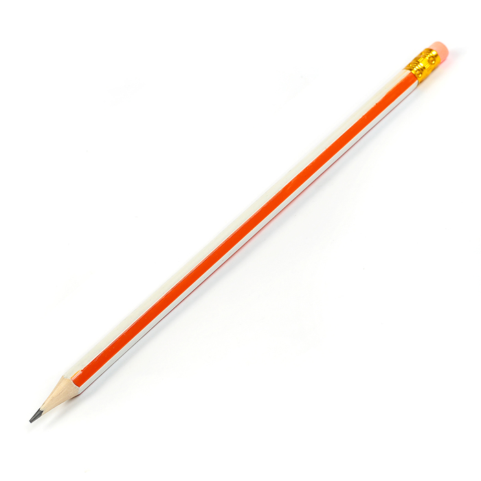 Карандаш ч/г с ластиком НВ корпус шестигранный Полоски белые с оранжевым — прекрасное сочетание выгодной цены и высокого качества. Прочный стержень не крошится, а деревянный корпус легко затачивается.