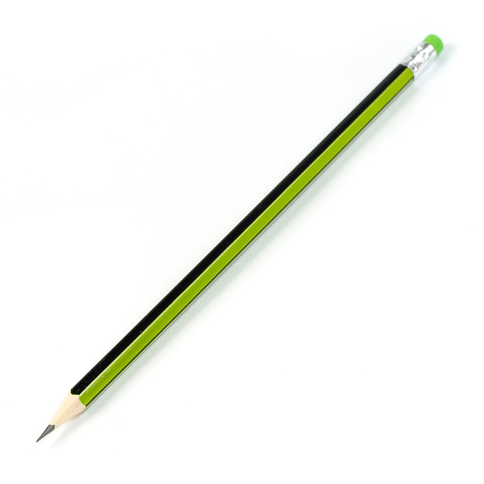 Карандаш ч/г с ластиком НВ корпус шестигранный Полоски светло-зеленые с черным — прекрасное сочетание выгодной цены и высокого качества. Прочный стержень не крошится, а деревянный корпус легко затачивается.