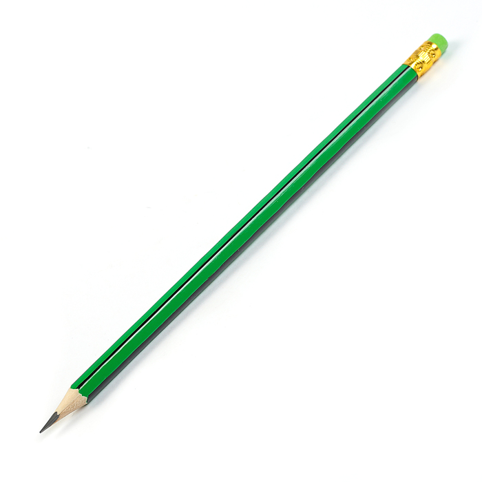 Карандаш ч/г с ластиком НВ корпус шестигранный Полоски зеленые с черным — прекрасное сочетание выгодной цены и высокого качества. Прочный стержень не крошится, а деревянный корпус легко затачивается.