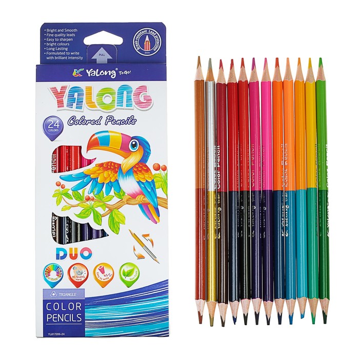 Карандаши 12/24цв ДВУХЦВЕТНЫЕ в картонной коробке Yalong заточенные треугольные МИКС поможет организовать ваше рабочее пространство и время. Востребованные предметы в удобной упаковке будут всегда под рукой в нужный момент.