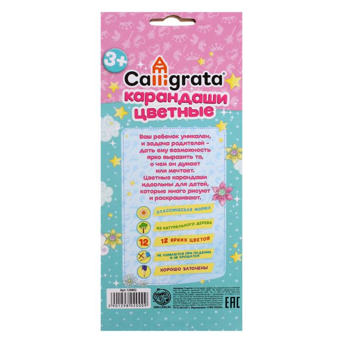 Карандаши 12 цветов Calligrata Принцесса