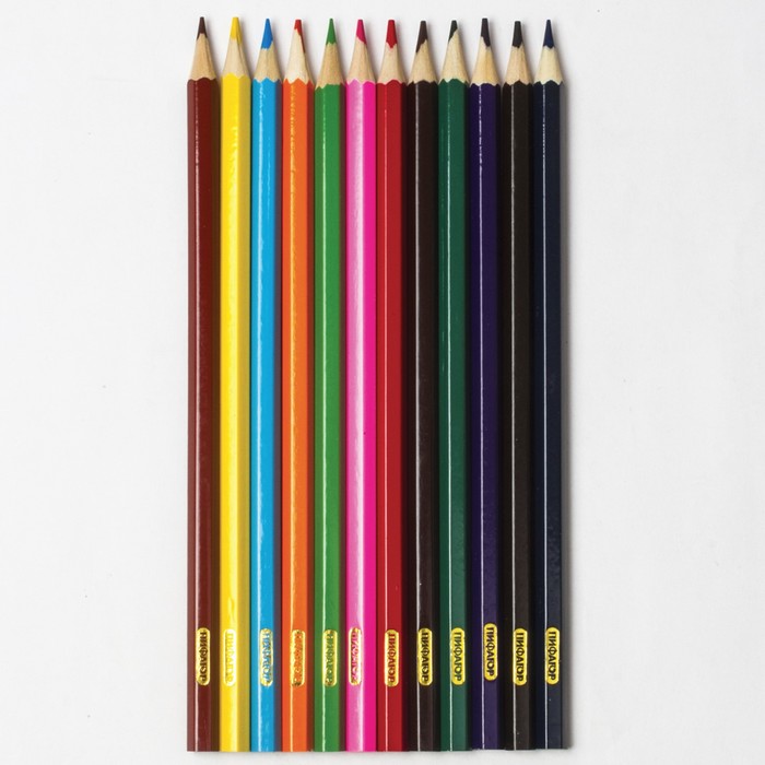 Карандаши ПИФАГОР, 12 цветов, классические, заточенные, картонная упаковка