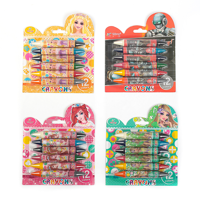 Карандаши восковые 06шт/12цв Yalong ДВУСТОРОННИЕ на блистере МИКС ТОЛСТЫЕ