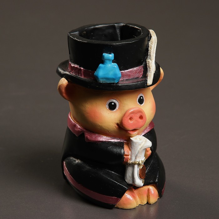 Карандашница "Поросёнок Черчилль" тёмный фрак, МИКС 10х9х12см