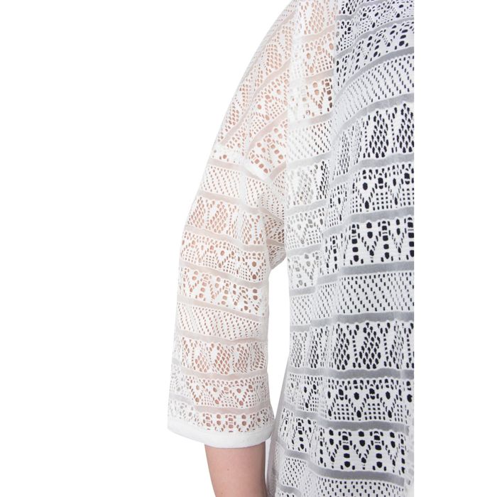 Накидка выполнена из трикотажного полотна с кружевными вставками.