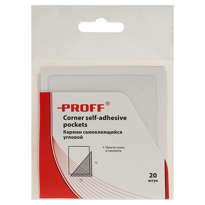 Карман самоклеящийся угловой 75х75 мм Proff, набор 20 штук