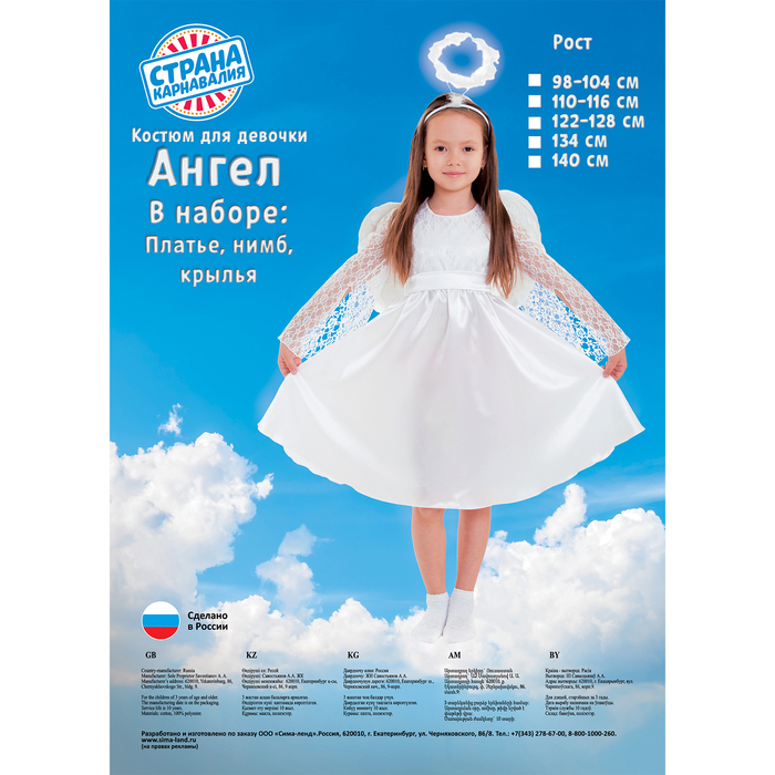 Невозможно представить нашу жизнь без праздников! Мы всегда ждём их и предвкушаем, обдумываем, как проведём памятный день, тщательно выбираем подарки и аксессуары, ведь именно они создают и поддерживают торжественный настрой. Карнавальный костюм "Ангел", платье, рукав 3/4 гипюр, нимб, крылья, р-р 32, рост 122-128 см — это отличный выбор, который привнесёт атмосферу праздника в ваш дом!