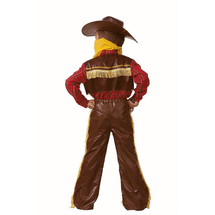 Карнавальный костюм "Ковбой", жёлтая бахрома, текстиль, рост 110 см создан специально для мальчиков, которые мечтают с головой окунуться в захватывающий вестерн. В нём есть всё, что нужно для стопроцентного перевоплощения в героя Дикого Запада: штаны с бахромой, жилет, пистолеты. Яркий платок повяжите на шею или голову. А в погоне по раскалённой пустыне обязательно прикройте им рот и нос от песка.